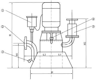 ①電動(dòng)空氣控制閥 ②吸液口 ③加液口 ④出液口(帶逆止閥,本單位供) ⑤放空口