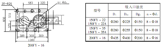FY型不銹鋼防爆液下泵結(jié)構(gòu)圖和安裝尺寸圖
