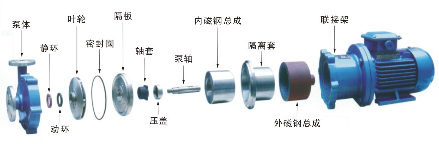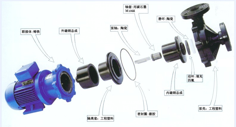 防爆自吸磁力泵工程塑料磁力泵防爆氟塑料磁力驅動泵結構分析圖