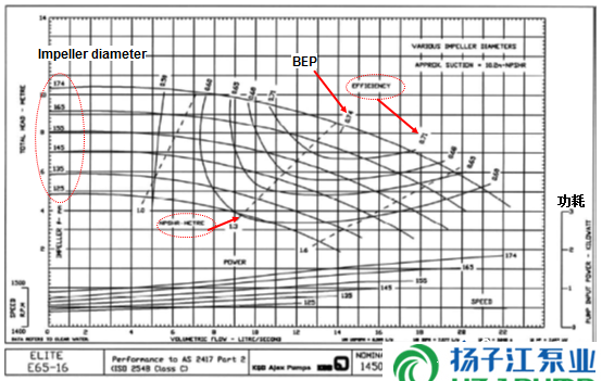 從曲線中可以看出:多種葉輪直徑,泵的輸入功率,BEP,效率,NPSHR