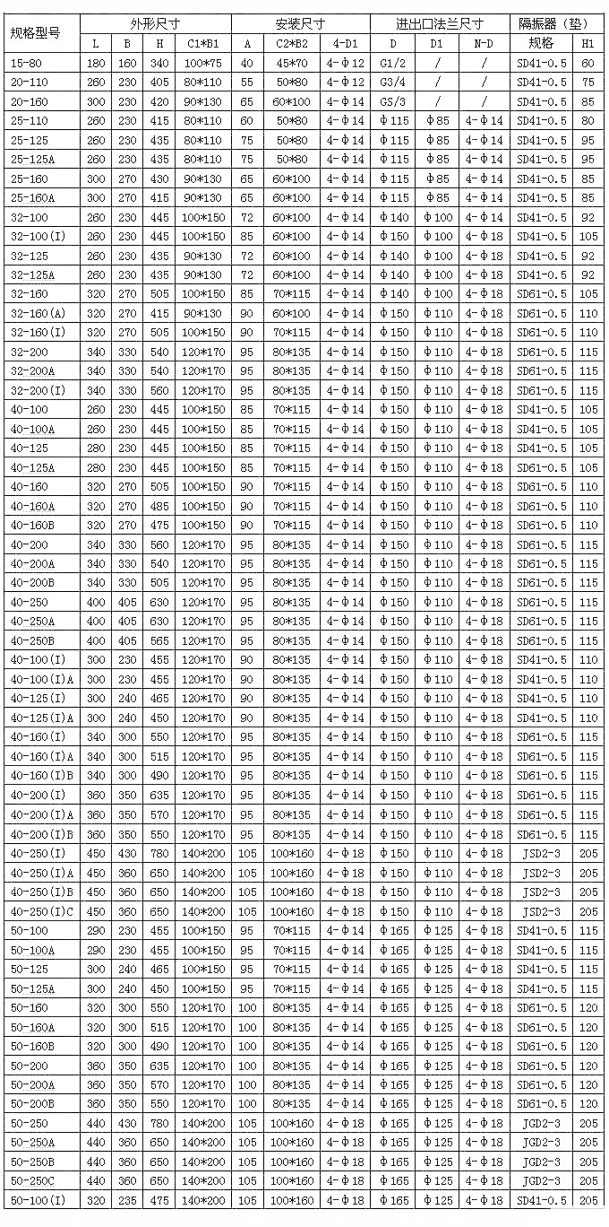 2、輸送介質(zhì)為清水或物理化學(xué)性質(zhì)類似清水的其它液體。(輸送介質(zhì)帶有細(xì)小顆粒的應(yīng)在訂貨時(shí)另行說明,以便裝配耐磨式機(jī)械密封)。