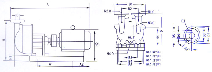 2BV7系列分體式水環(huán)真空泵外形示意圖