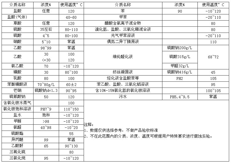 在抗腐蝕材料中,氟塑料具有無可比擬的優(yōu)異性能,除了熔融堿金屬、元素氟及芳香烴類和濃硝酸在170℃以上有腐蝕現(xiàn)象外,在其余各種濃度的鹽酸、硫酸、硝酸、王水、有機(jī)酸、強(qiáng)氧化劑、濃、稀酸交替,酸、堿交替和各種有機(jī)溶劑中均呈 惰 性反應(yīng)。將其內(nèi)襯于泵、閥內(nèi)壁,既克服了氟塑料材料強(qiáng)度低的缺點(diǎn),又解決了泵、閥主體材料抗腐蝕性能差、成本高的不足。另外,氟塑料除了具有優(yōu)異的化學(xué)穩(wěn) 定性外,其防污、防粘性好、動(dòng)靜摩擦系數(shù)值極小且相近,減摩潤滑性能良好,將其做為閥門啟、閉件的密封副,可降低密封面間磨擦力,減小閥門操作扭矩,提高 產(chǎn)品使用壽命,其使用范圍還可擴(kuò)展到食品、醫(yī)藥工業(yè)。其內(nèi)襯材料除PTFE(F4)、FEP(F46)、PVDF(F2)外,又?jǐn)U展到聚烯烴類的PE、PP及PVC范圍,以滿足各種不同工況參數(shù)的需要。我公司氟塑料泵產(chǎn)品主要有兩大類型,一類為全氟(氟塑料合金)型耐腐蝕泵,(此類為小型泵);一類為全內(nèi)襯氟塑料(F46)型耐腐蝕泵,(此內(nèi)為大型泵)。