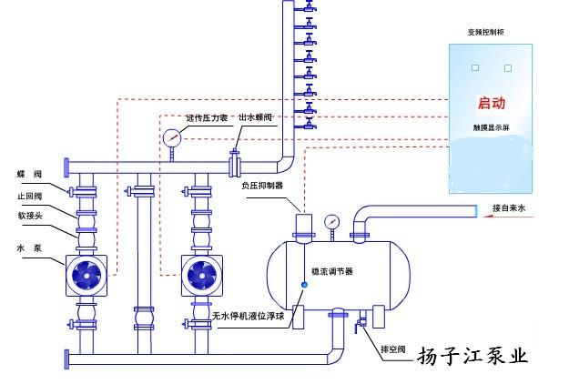 工作原理:無負壓變頻恒壓供水設(shè)備是一種新型的清潔衛(wèi)生、高效節(jié)能的供水設(shè)備,也被業(yè)界稱為管網(wǎng)疊壓供水設(shè)備。該設(shè)備為全封閉式結(jié)構(gòu),不需要建造任何形式的水池,避免了供水二次污染。直接將食品衛(wèi)生等級的不銹鋼穩(wěn)流調(diào)節(jié)罐作為進水儲水緩沖裝置直接與自來水管道相連,充分利用自來水管網(wǎng)原有壓力能源,在同樣供水需求的情況下,無負壓變頻供水可選擇功率較小的水泵及控制設(shè)備。同時在夜間小流量用水情況下利用市政供水水壓直接供水而無需啟動水泵。相比傳統(tǒng)帶水池的供水設(shè)備,該設(shè)備節(jié)約了大量的電能和設(shè)備投資,其節(jié)能效果可高達50%以上。運行過程中,穩(wěn)流調(diào)節(jié)罐配備的真空消除器可自動消除設(shè)備運行過程中對管網(wǎng)所產(chǎn)生的負壓,保證了正常供水的同時設(shè)備不會對市政管網(wǎng)其他用戶造成影響。無負壓變頻供水是目前高效節(jié)能的供水設(shè)備,特別適合城鎮(zhèn)自來供應(yīng)較為穩(wěn)定和充足的場合使用。