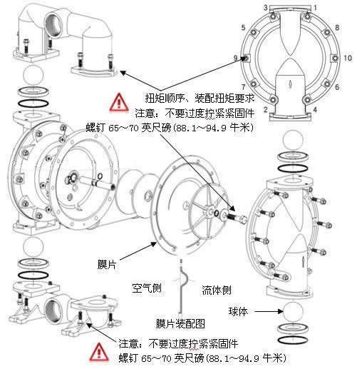 氣動(dòng)隔膜泵長(zhǎng)時(shí)間,高速運(yùn)行容易損壞出故障,原因無(wú)外乎磨損、松動(dòng)、破裂和污阻,以下為氣動(dòng)隔膜泵的拆解,故障分析與維修方案: