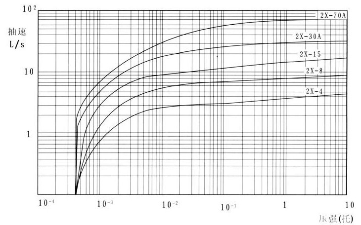 四、2X型旋片式真空泵的性能曲線(xiàn)圖: |