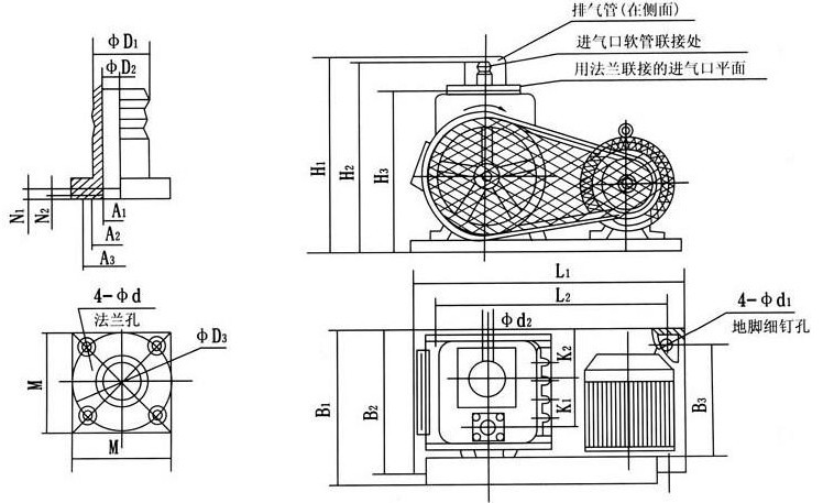1、拆箱后小心取出旋片真空泵體、備附件及說(shuō)明書(shū)并保管好作日后備用。除去填充物,擦凈泵的表面灰塵、垢。按裝箱單清點(diǎn)數(shù)目。 2、旋片真空泵安裝在環(huán)境清潔、通氣良好,光線(xiàn)充足符合第4條要求的室內(nèi)。根據(jù)使用情況泵應(yīng)安裝在有一定寬裕的場(chǎng)地,以便于操作維護(hù)。旋片真空泵的外形尺寸見(jiàn)。可以放置在堅(jiān)實(shí)平坦的地面上,不需特別的地基,如需固定可另加螺釘與基礎(chǔ)固牢,地腳螺釘尺寸見(jiàn)。旋片真空泵如靠近精密儀表使用時(shí),應(yīng)考慮增加防震裝置。 3、將被抽容器用真空軟管或法蘭與旋片真空泵相聯(lián)結(jié),如用法蘭聯(lián)接時(shí),法蘭上應(yīng)有橡膠圈槽,形式及尺寸見(jiàn)上圖聯(lián)接被抽容器的管徑不應(yīng)小于泵進(jìn)氣口直徑,管通宜短,接頭宜少,否則影響抽速,管道和接頭的漏氣量應(yīng)小。被抽容器的氣體量應(yīng)與泵的抽速相適應(yīng)。在泵與被抽容器之間建議裝上一個(gè)真空閥,以便控制氣體流量。對(duì)于泵并建議裝上一個(gè)放氣閥(或電磁閥)以便停車(chē)時(shí)對(duì)泵放氣,能防止返油以及容易起動(dòng)。 4、按照電機(jī)標(biāo)牌所示電壓和接線(xiàn)方式接上電源,并建議采用保險(xiǎn)裝置以免超載,判明電機(jī)旋轉(zhuǎn)方向,應(yīng)與旋片真空泵上箭頭方向一致。取下排氣塞裝上排氣罩,或?qū)⑴潘焐系奶鬃尤∠。旋片真空泵需冷卻者接上水源。 5、如必須使旋片真空泵抽除有毒的及腐蝕黑色金屬的氣體、對(duì)真空油起化學(xué)變化的氣體、及超過(guò)常溫和有塵埃的氣體時(shí),應(yīng)在進(jìn)氣管道上加裝中和、冷卻、過(guò)濾等有關(guān)裝置配合使用,否則將影響旋片真空泵使用性能和壽命。抽除對(duì)人體有害的氣體時(shí),應(yīng)安上相應(yīng)的管道,將排出氣體引至室外遠(yuǎn)離工區(qū)進(jìn)行處理。 注:安裝時(shí)應(yīng)小心,防止鐵屑、污物、塵埃等落入旋片真空泵內(nèi) |