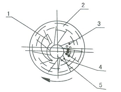 ![]() 圖(2)SK型直聯(lián)水環(huán)式真空泵的工作原理圖