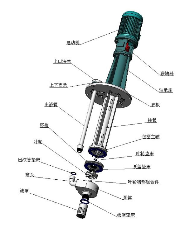 FYU系列耐腐耐磨液下泵結(jié)構(gòu)圖及安裝說明