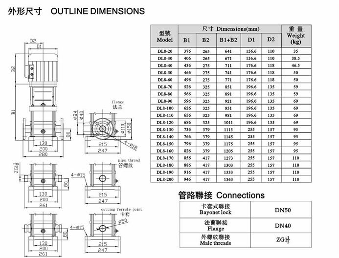 CDLF立式不銹鋼多級泵安裝尺寸圖