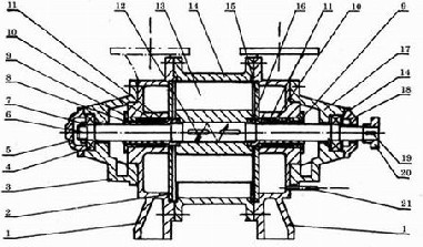 SK型水環(huán)式真空泵的拆卸分為部分拆卸檢査和完全拆卸修理及更換零件,在拆卸前應(yīng)將泵腔內(nèi)的水放出.并將進(jìn)氣及排氣拆下。在拆卸過程中,應(yīng)將所有的墊謹(jǐn)慎地取下,如發(fā)生損壞'應(yīng)在裝配時(shí)更抽象同樣厚度的新墊。泵應(yīng)從后端(無聯(lián)軸器一端) 開始拆卸,其順序如下: