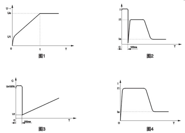 ◆ 突跳十限電流起動:用于重載時靜摩擦力太大電機不能起轉(zhuǎn)的場合,起動波形如圖4