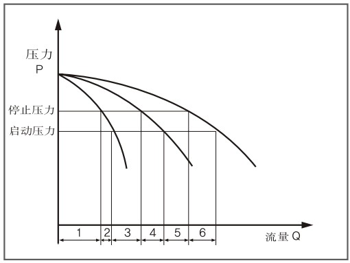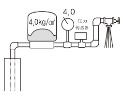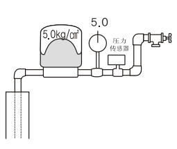 水泵剛運(yùn)轉(zhuǎn)時(shí),先給壓力罐補(bǔ)滿水,隨著壓力增大達(dá)到設(shè)定壓力后,水泵停止。