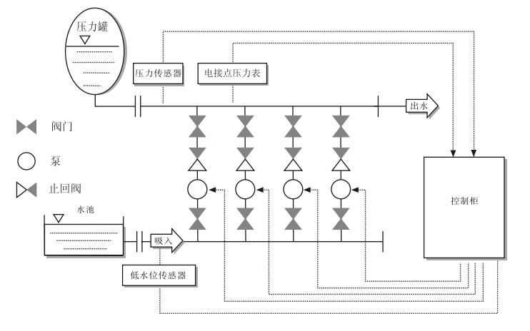 智能變頻恒壓供水設(shè)備工作示意圖
