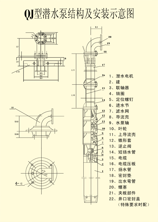 QJ型井用潛水泵(深井泵)結(jié)構(gòu)說(shuō)明: