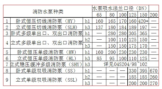 該規(guī)格消防泵放氣孔在出水法蘭部位,距吸水口中心高度(h1)為300~420mm.