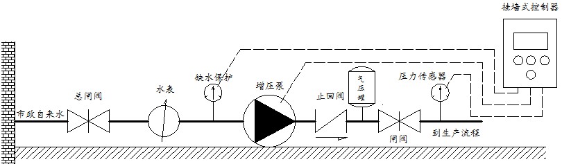 臨時(shí)供水系統(tǒng)組成圖,當(dāng)功率較大時(shí),控制器不能采用掛墻式,必須采用落地式控制器才能保證良好的散熱