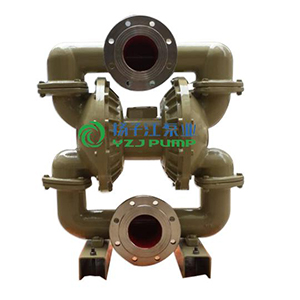 隔膜泵實際上就是栓塞泵,是借助薄膜將被輸液體與活柱和泵缸隔開,從而保護活柱和泵缸。隔膜左側(cè)與液體接觸的部分均由耐腐蝕材料制造或涂一層耐腐蝕物質(zhì);隔膜右側(cè)充滿水或油。氣動隔膜泵其常用的有五種材質(zhì):塑料、鋁合金、鑄鐵、