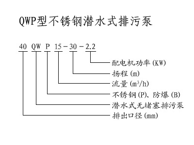 QWP型不銹鋼潛水式排污泵型號(hào)意義: