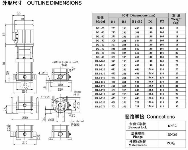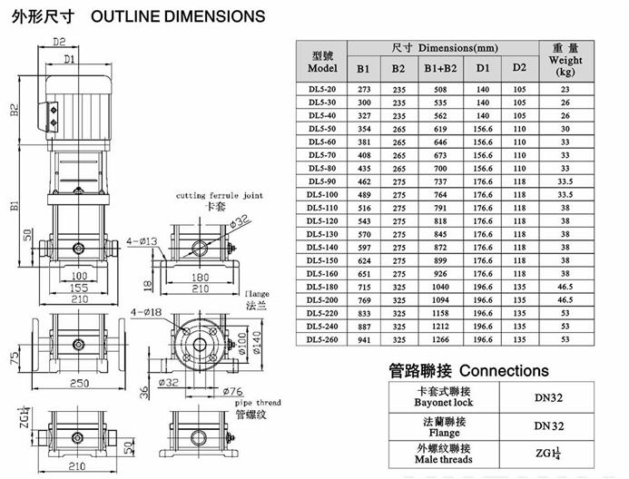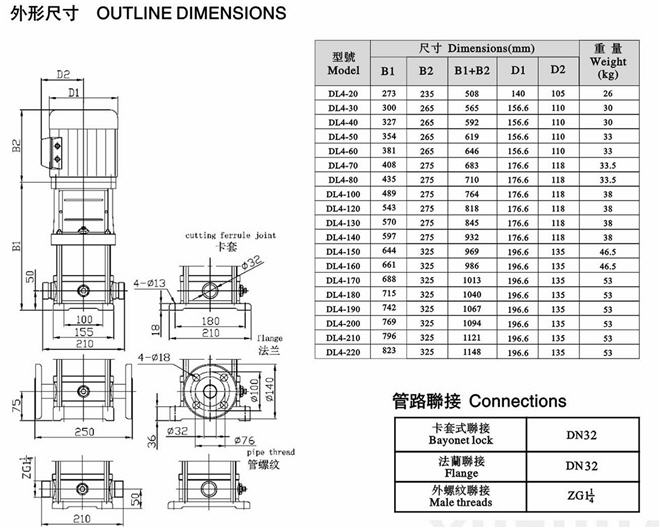 CDLF立式不銹鋼多級泵安裝尺寸圖