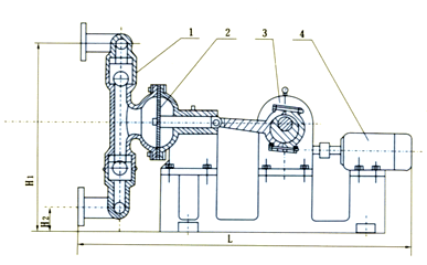 電機(jī)(4)通過(guò)減速箱(3)帶動(dòng)左右兩端柱塞上面的隔膜(2)一前一后往復(fù)運(yùn)動(dòng)。在左右兩個(gè)泵腔內(nèi),裝有上下四個(gè)單向球閥(1)隔膜的運(yùn)動(dòng),造成工作腔內(nèi)的容積的改變,迫使四個(gè)單向球閥交替地開(kāi)啟和關(guān)閉,從而將液體不斷地吸入和排出。